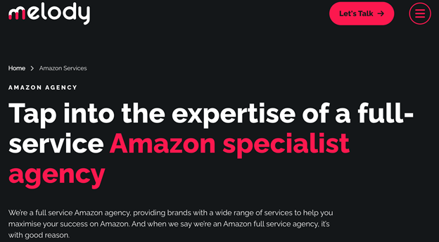 Melody is an Amazon creative and content agency based in the UK. They help answer questions like “what now?” and “what’s next” by anticipating future trends and understanding customer behaviours.